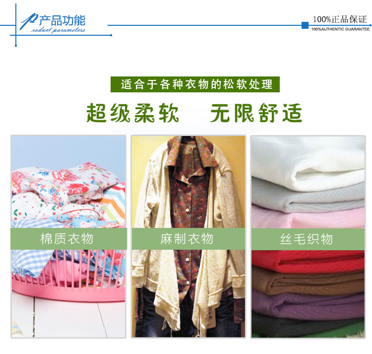 2.滲透性好,能滲入織物纖維內部,使織物能持久蓬松滑爽及柔軟。