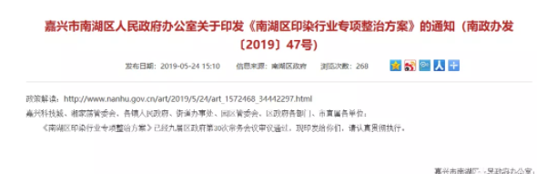 再見,印染!嘉興南湖19家印染廠限期關停,全面淘汰,最遲2020年11月30日!