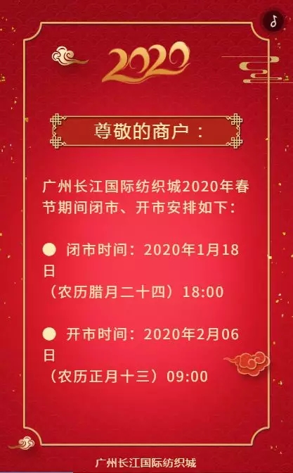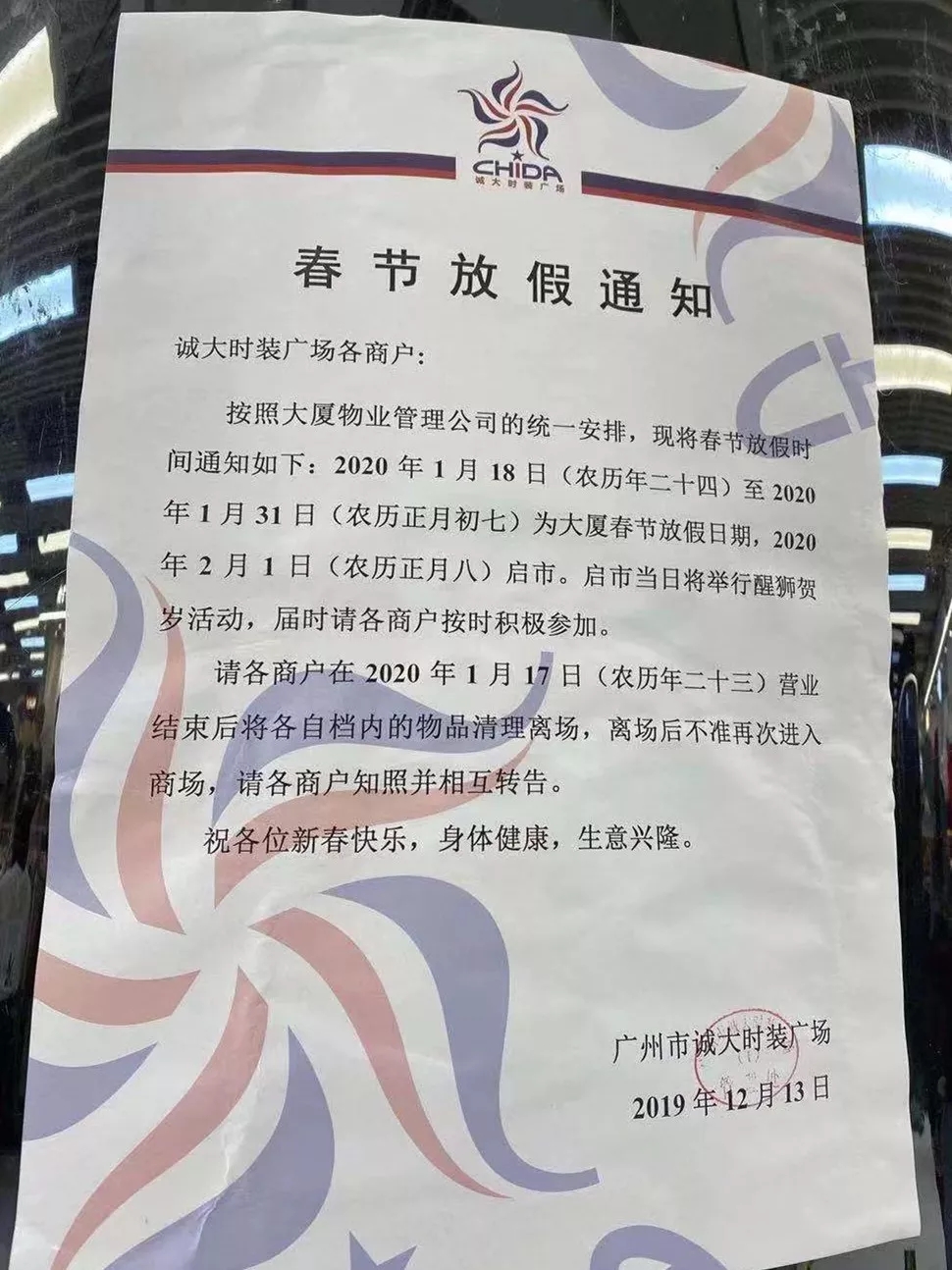 想必此時(shí)大家都很關(guān)注各大服裝城的放假時(shí)間吧小編最近整理了廣州幾個(gè)服裝城的放假時(shí)間這就給大家奉上~如果你覺得有用別忘在文末點(diǎn)個(gè)“在看”讓更多紡織服裝人看到哦~