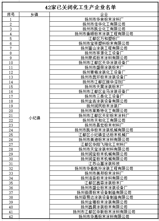 最近,江蘇各地區(qū)陸續(xù)公布了2019年關停企業(yè)的名單。