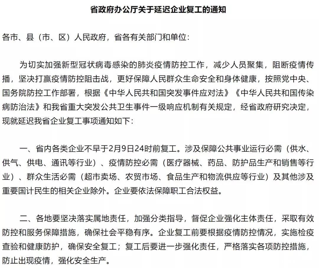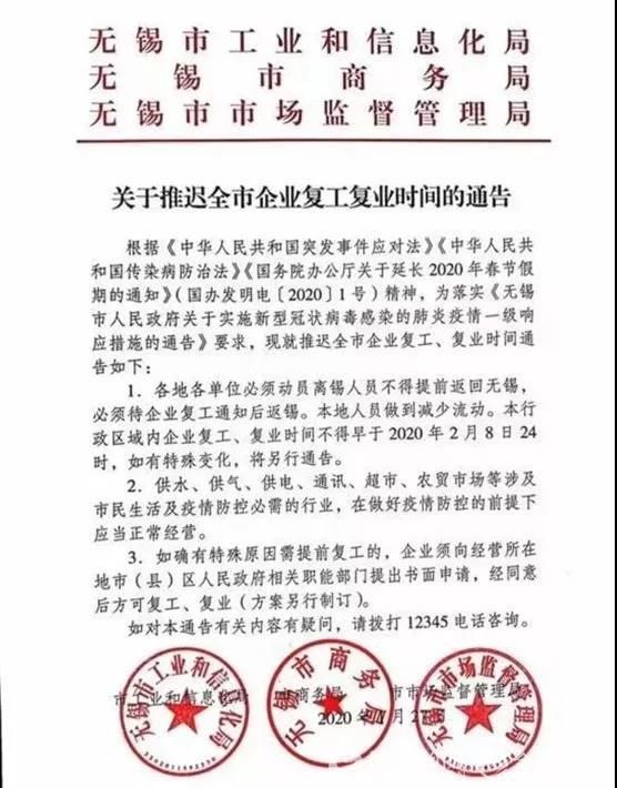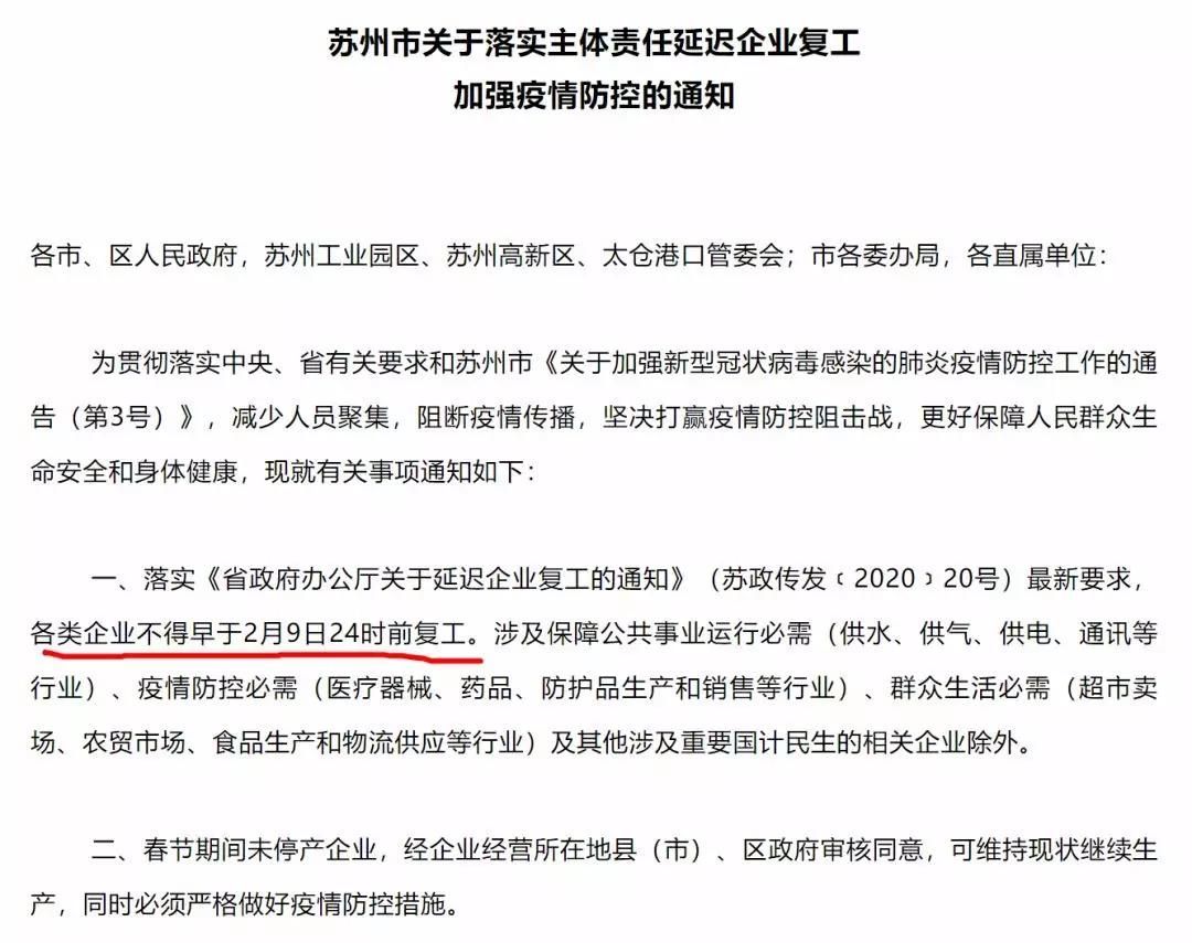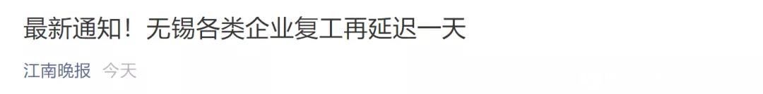 再延遲一天!蘇州、無錫企業不得早于2月9日24時前復工!