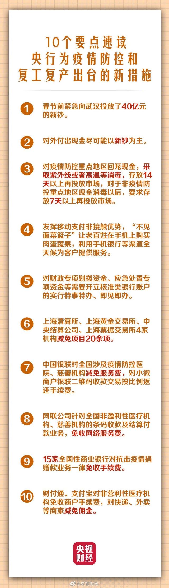①春節前緊急向武漢投放了40億元的新鈔;②對外付出現金盡可能以新鈔為主;③發揮移動支付非接觸優勢;④15家全國性商業銀行對抗擊疫情捐贈款業務一律免收手續費...戳一圖了解↓↓