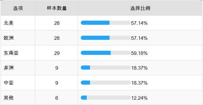 對(duì)樣本企業(yè)外銷訂單調(diào)研結(jié)果表明,隨著國外疫情進(jìn)入高發(fā)期,國際市場短期需求凍結(jié),采購意愿降低,我國出口企業(yè)面臨國外買家大范圍取消訂單或要求延遲發(fā)貨的困境,企業(yè)信心受到打壓,企業(yè)經(jīng)營壓力持續(xù)增大。從問卷匯總信息來看,參與調(diào)研的企業(yè)外銷市場主要集中在東南亞、北美、歐洲等地區(qū)。其中,產(chǎn)品出口東南亞地區(qū)的企業(yè)占比最高,選擇比例為59.18%,其次為北美和歐洲地區(qū),選擇比例均為57.14%,此外還有部分企業(yè)產(chǎn)品出口至非洲、中亞等地區(qū)。