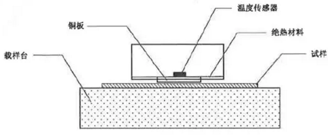 當然新的國家標準GB/T 35263-2017《紡織品接觸瞬間涼感性能的檢測和評價》,將于2018年7月1日實施,本標準規定了紡織品與皮膚接觸瞬間涼感性能的檢測與評價方法,適用于各類織物及其制品。測試原理是在規定的試驗環境條件下,將溫度高于試樣的熱檢測板與試樣接觸,測定熱檢測板溫度隨時間的變化,并計算其接觸涼感系數(qmax),由此可表征試樣的接觸瞬間涼感性能。而接觸涼感系數qmax是指將溫度高于試樣規定溫差的熱檢測板以一定壓力與試樣接觸,熱檢測板與試樣接觸后熱量傳遞過程中熱流密度的最大值,qmax數值越大表示皮膚感受到涼感程度越強,數值越小表示皮膚感受到涼感程度越弱。測試儀器示意圖見下圖。