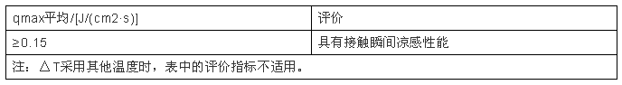 此標準可對樣品的接觸瞬間涼感進行評價,△T=15℃時評價指標見下表。