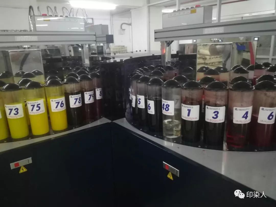 ★殘液芽啥棄再放入新的白布,它的目的是來吸收余留的染料,做法是:待12杯 殘液布放入妥善完畢后>放入試色機再染一次130℃×60分> 取12色樣(我們稱 殘液色樣)